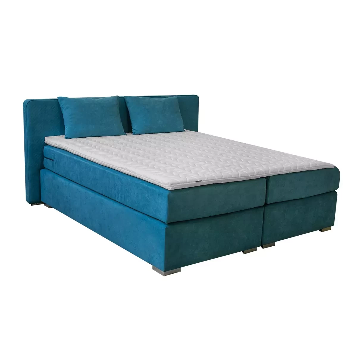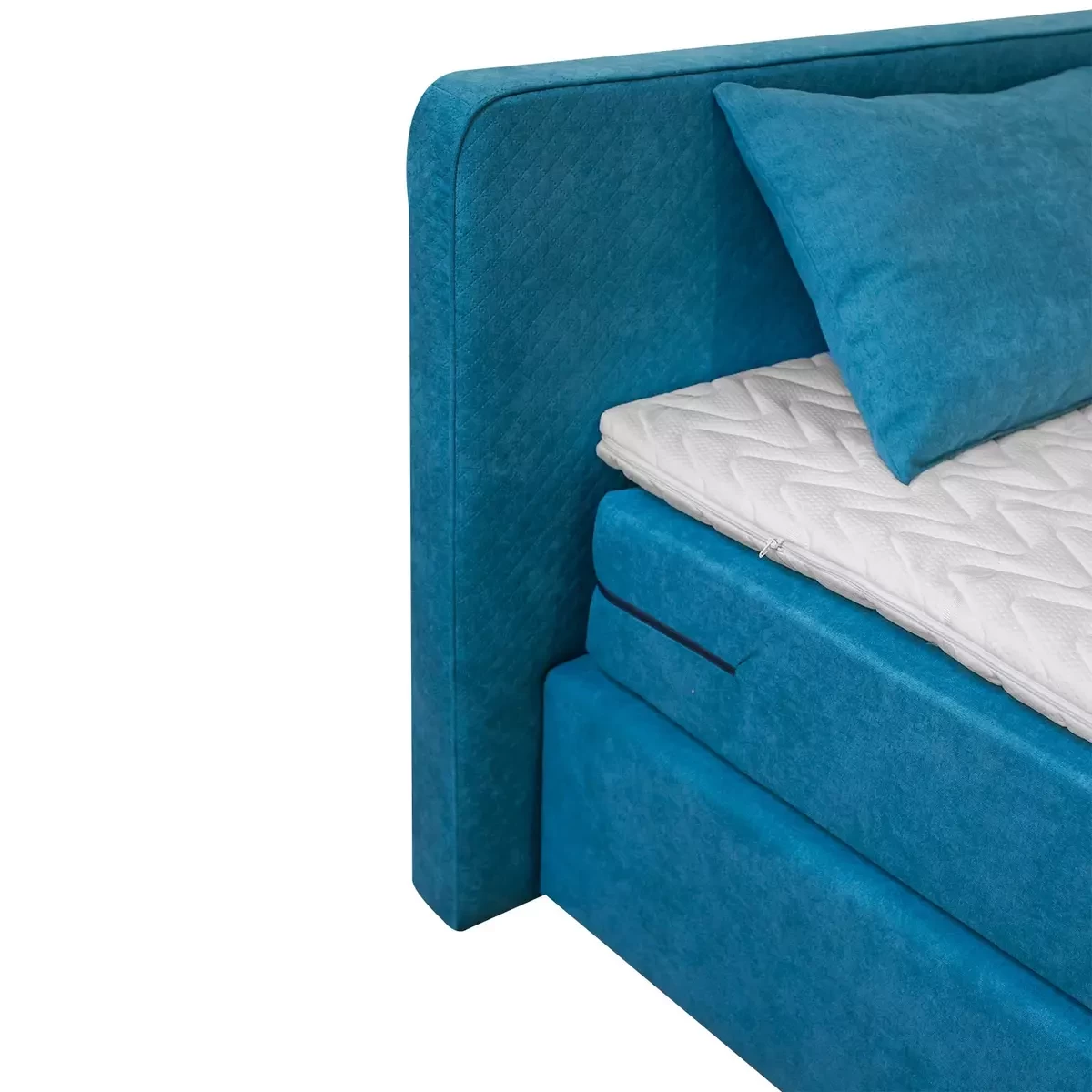 Patul pentru dormitor Boxspring Bold este construit din elemente care asigura un nivel ridicat de functionalitate si un aspect unic. Acest pat este tapitat cu stofa albastra, o nuanta indrazneata, care creeaza un ambient atractiv in camera de odihna.