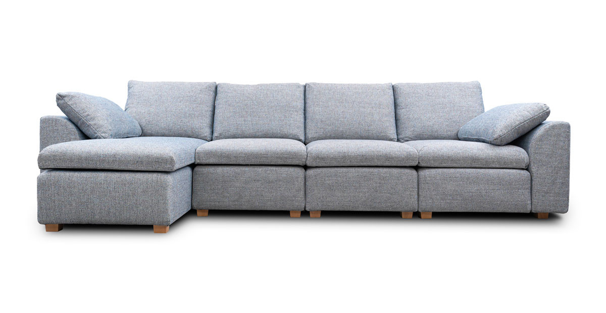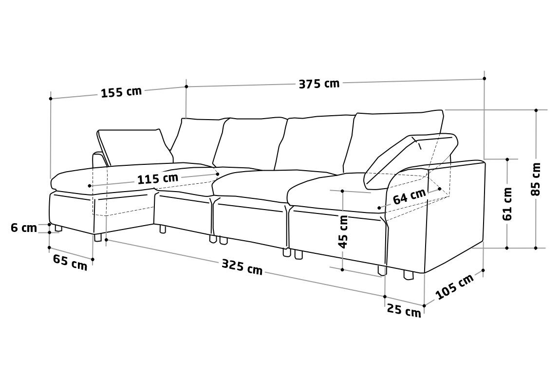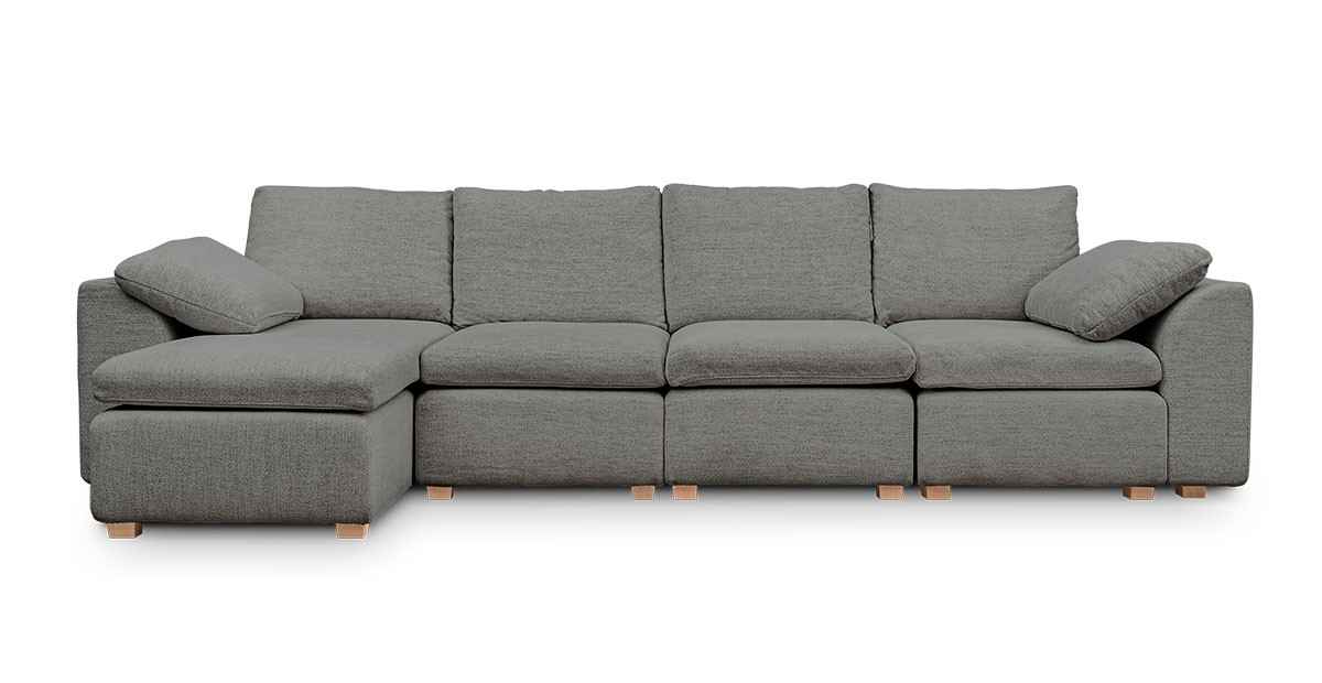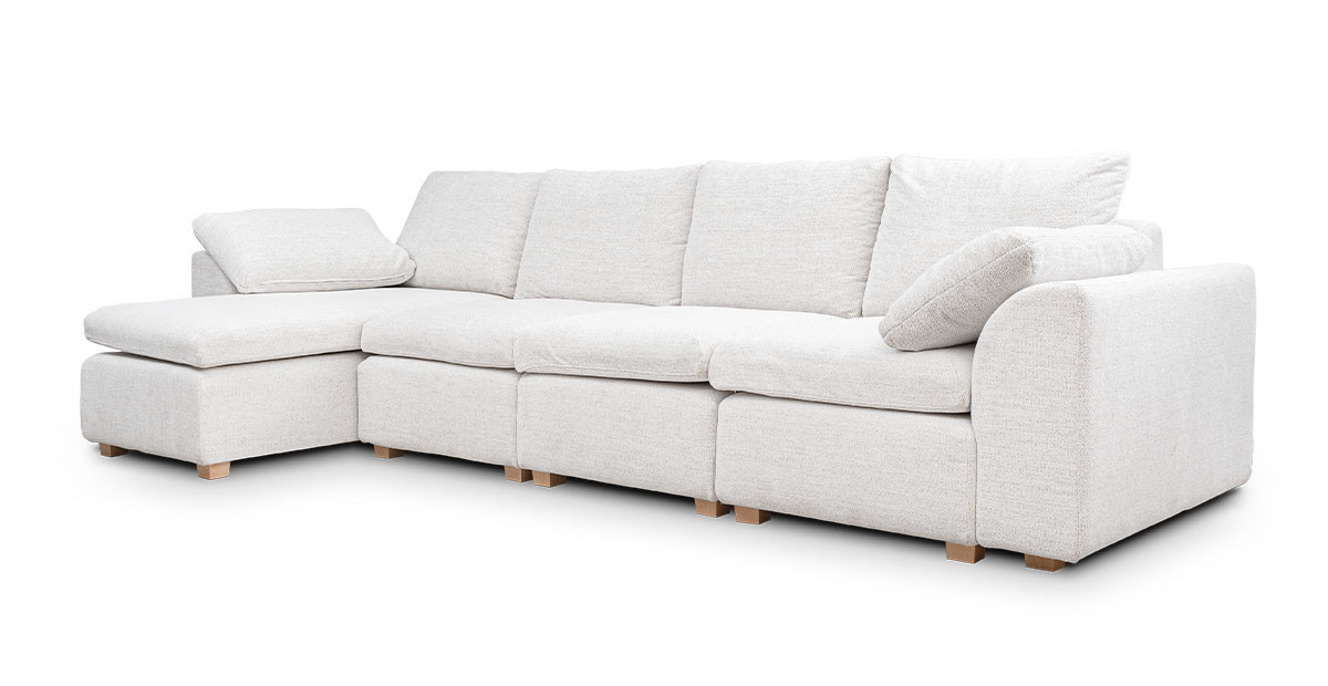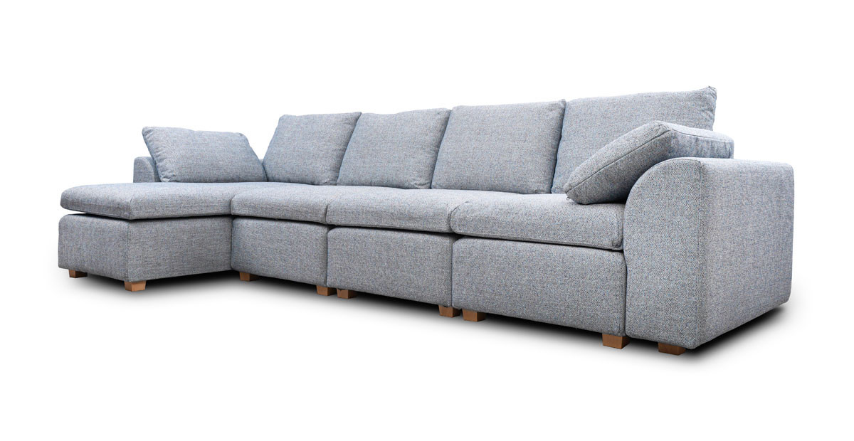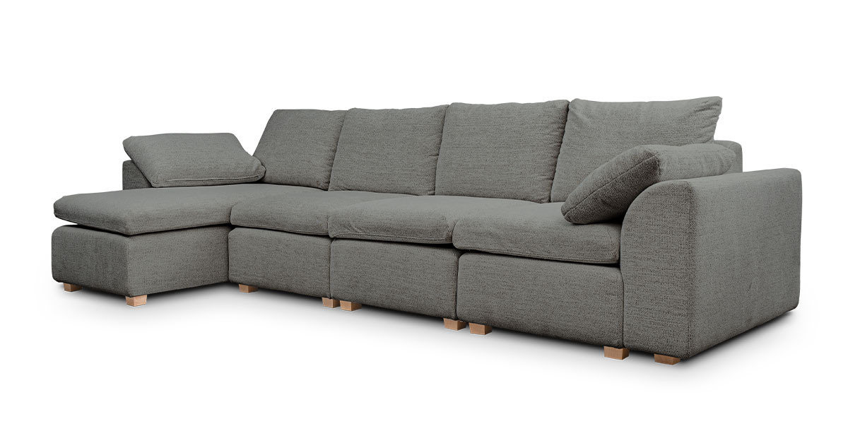 Canapeaua modulară Fluffy compusă din 4 module, cu șezlong, este un produs special creat pentru iubitorii de confort și schimbare.