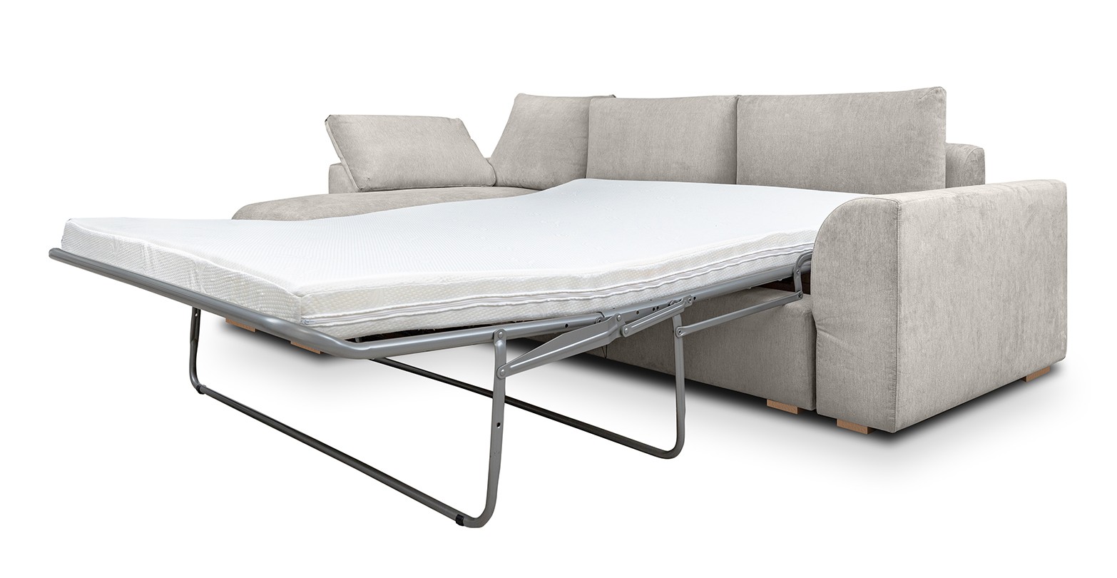 Datorită confortului ridicat, șezutului foarte generos și mixului de materiale pe care le are în componență, canapeaua oferă o senzație de scufundare într-o oază de relaxare, fiind unul dintre cele mai confortabile și practice produse ale colecției. Confortul și estetica sunt completate de șezlong și de funcția extensibilă a canapelei, care încorporează un dormitor relaxant, cu saltea din spumă de înaltă reziliență și husă detașabilă din poliester.