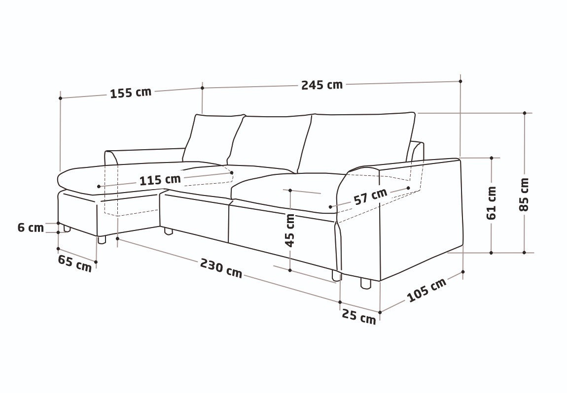✓ Este o piesă multifuncțională: prin modulele care o compun, canapeaua se poate transforma din canapea simplă în canapea cu șezlong, colțar sau trei fotolii confortabile.