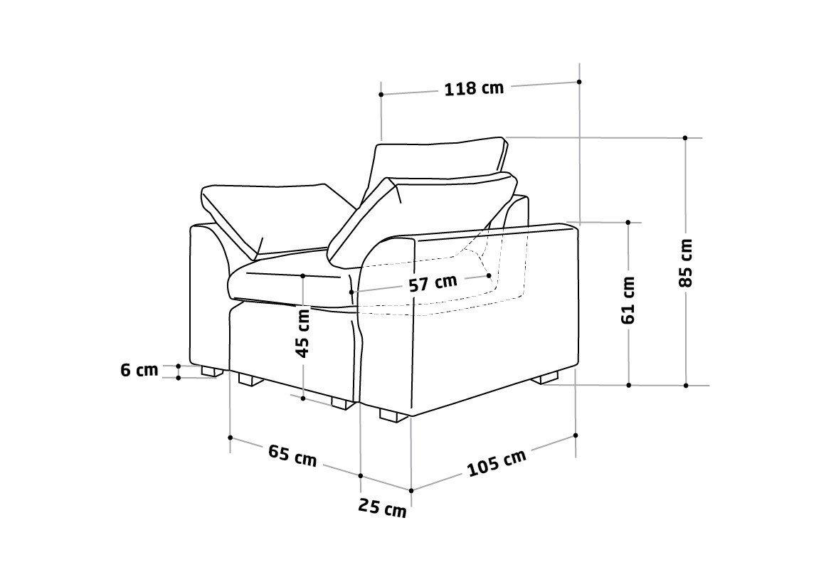 Designul estetic al fotoliului este completat de aspectul confortabil al produsului. Datorită șezutului foarte generos și mixului de materiale pe care le are în componența sa, fotoliul oferă o senzație de scufundare într-o oază de relaxare.