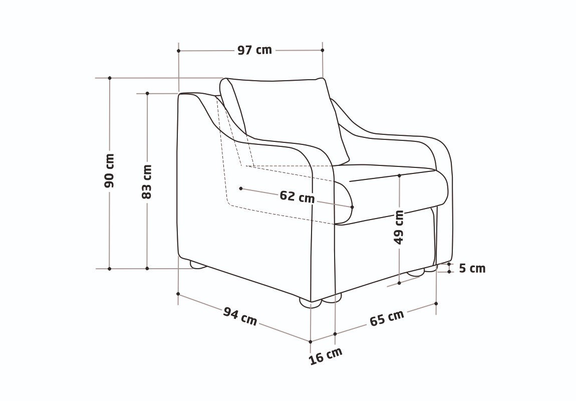 ✓ Poate fi folosit atât ca element de sine stătător, cât și acompaniat de o canapea sau alte fotolii din aceeași colecție, pentru a echilibra și a da amploare amenajării.