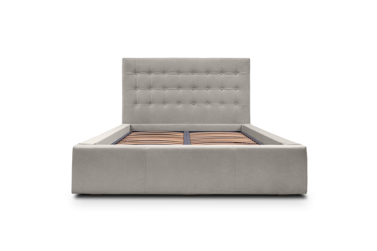 ✓ Stofa din care este realizat patul are o textură catifelată, cu reflexii ce oferă un aspect elegant și modern