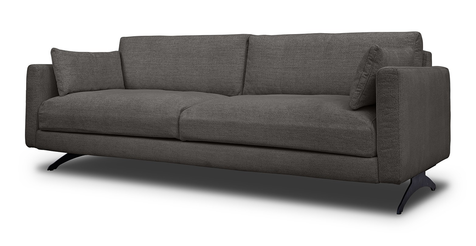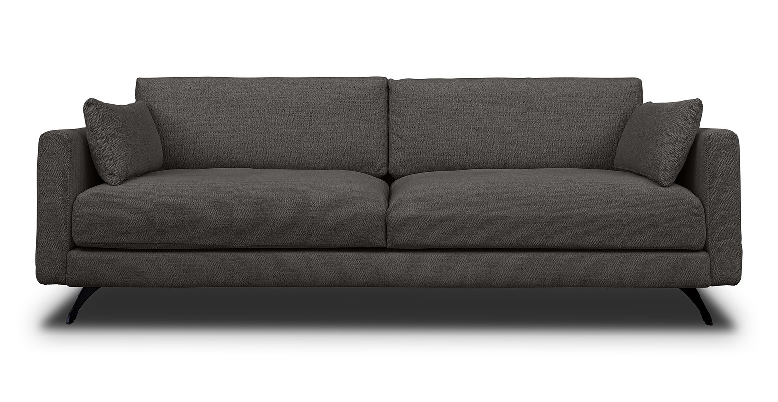 Canapea fixă extra-confortabilă, de două locuri, cu picioare metalice negre și design ultra-modern.