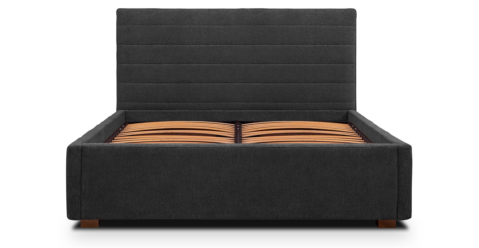 Pat tapițat, cu ladă de depozitare și somieră rabatabilă disponibil în mai multe dimensiuni și variante de culori.