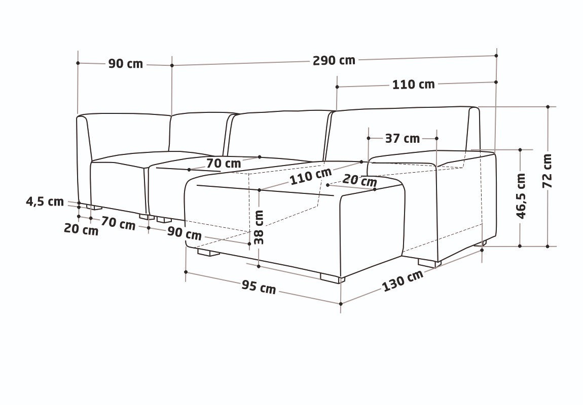 ✓ Ansamblul modular Zen oferă posibilitatea de ajustare a modulelor care o compun, acestea pot fi interschimbate și se poate obține orice formă dorită de canapea sau colțar