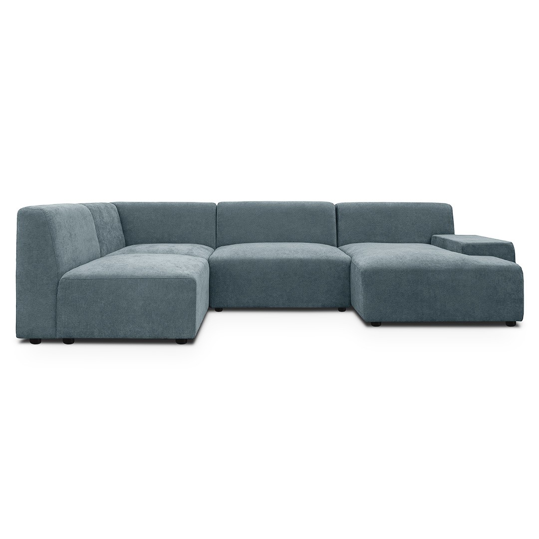 Canapeaua include un modul cu șezlong și un taburet, care conturează ansamblul în formă de „U”.